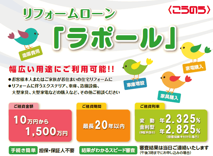 - 住宅の増改築、改装、補修並びに住宅関連機器購入資金